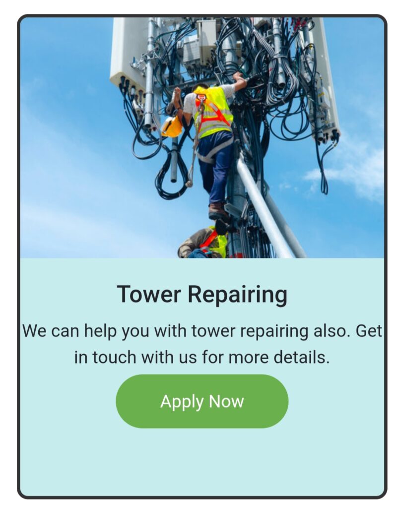 We deliver Best mobile tower Installation Services in India, best mobile tower installation, mobile tower our company, Repair Mobile Tower, Mobile Tower installation on Service, Top mobile tower Installation Services Provider in India. At All India Tower Installation, we are dedicated to providing top-tier tower installation services that meet the highest industry standards. With years of expertise in the field, we ensure every project is executed with precision, safety, and efficiency. Our commitment is reflected in our quality-driven approach, ensuring reliable and robust tower structures that support seamless connectivity and communications. We prioritize the needs of our clients and consistently strive to exceed expectations, building long-term relationships through transparency, professionalism, and outstanding service.